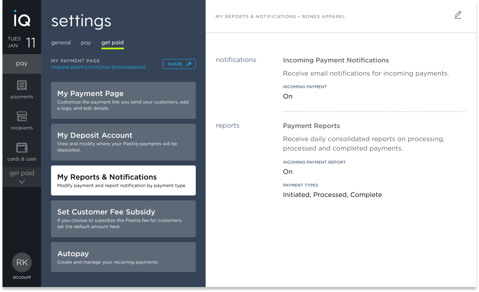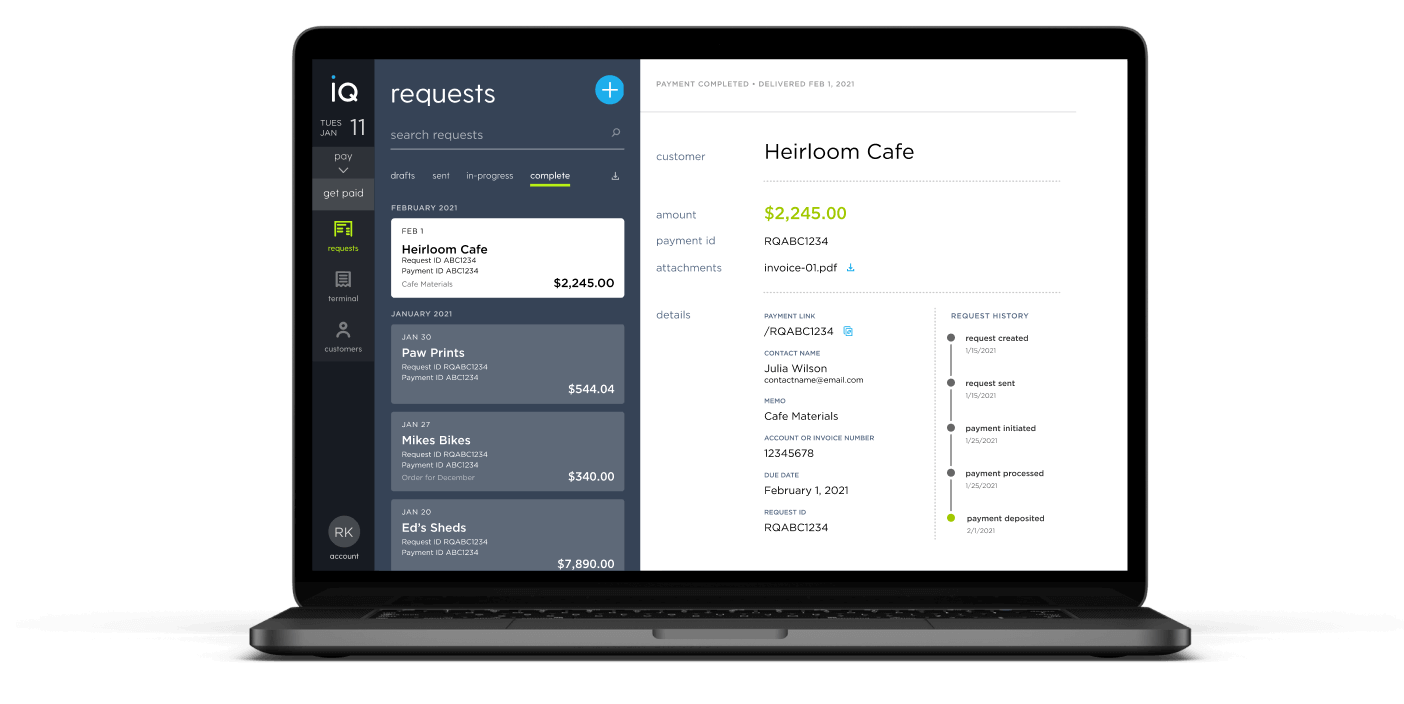 Track payments from request to payment initiated all the way through to when cash is deposited in your bank account. Better visibility means better cash flow management.