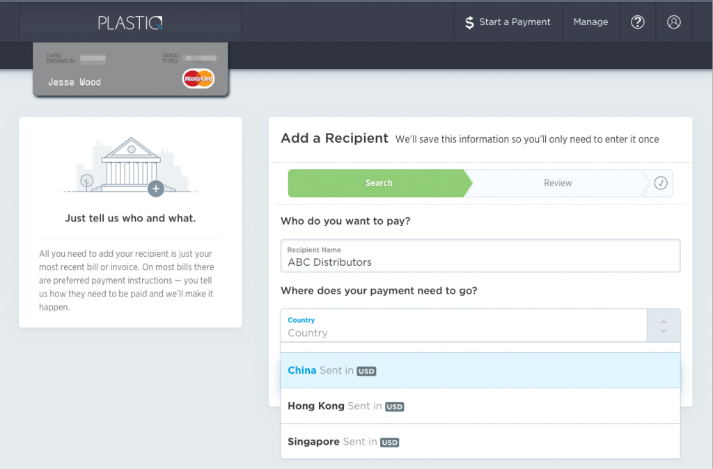 Starting today, all Plastiq users will be able to make international payments to businesses in China, Hong Kong, and Singapore. And we’ll be adding payment capabilities to more countries over the coming weeks.