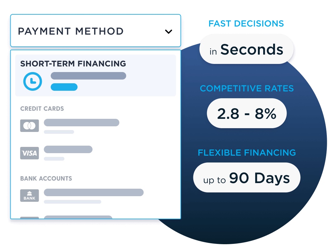 Rates from 2.75% - 10.65% on single and installment payments. Choose flexible 30, 60, or 90 day payback options.